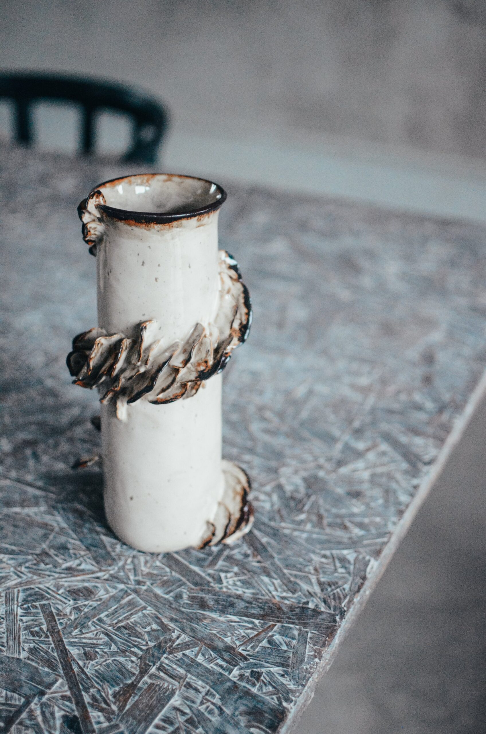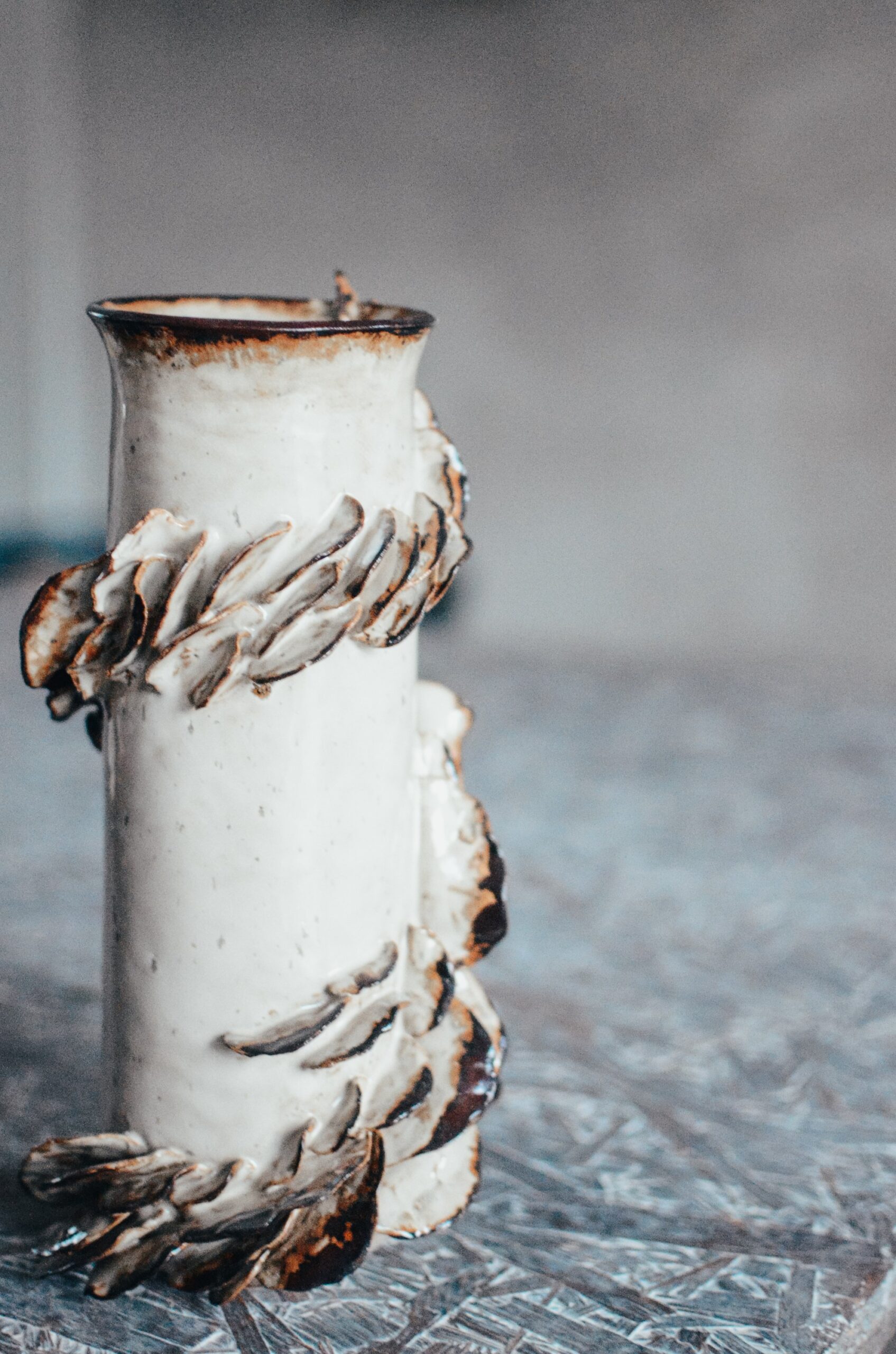 Wazon ceramiczny, kamionkowy z jasnej gliny.