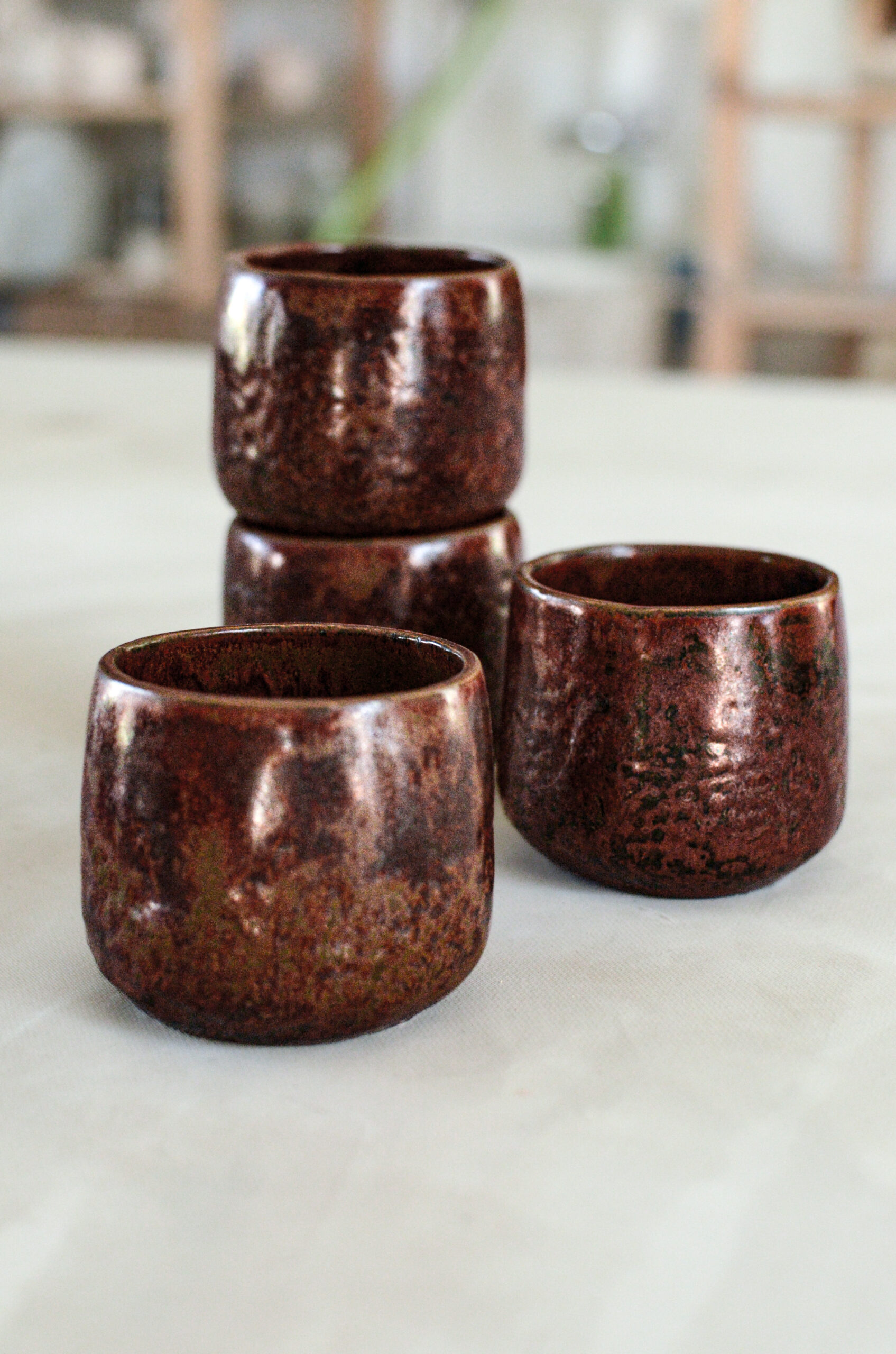 Kolor czarek nałatwiej określić jako miedziany metaliczny. Mocno błyszczące brązowe szkliwo z jasnymi i ciemnymi przebarwieniami przechodzącymi w złote plamki (pamiętajcie, że monitory i ustawienia ekranów, mogą przekłamywać kolory).