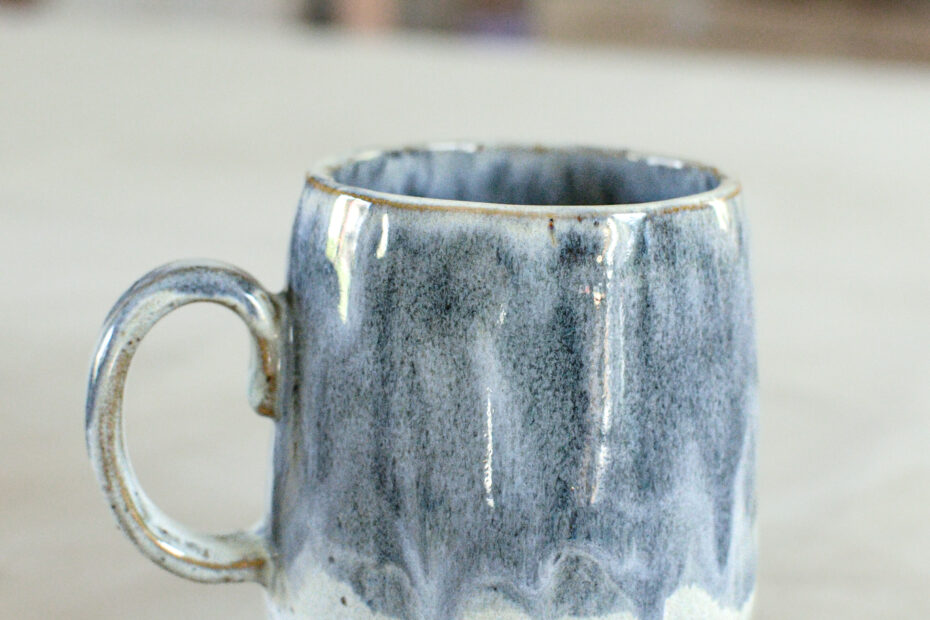 Kubek ceramiczny, kamionkowy, lepiony i szkliwiony ręcznie.