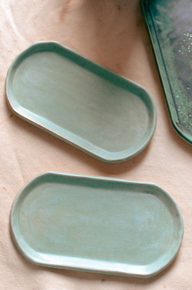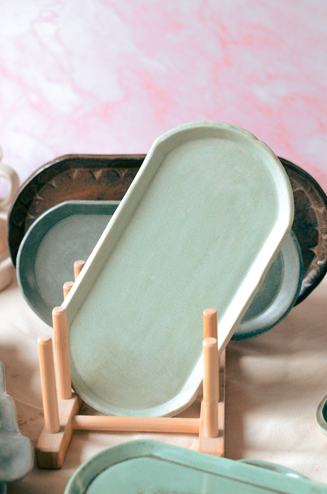 Owalna patera kamionkowa zrobiona z jasnej gliny.